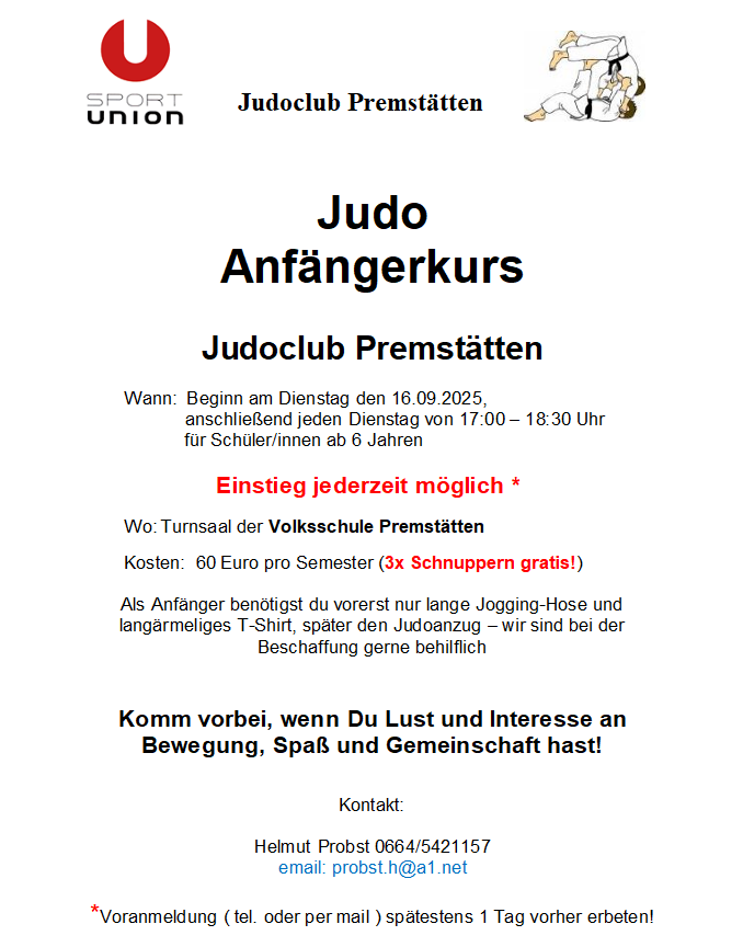 Liebe Judoka, liebe Kinder, liebe Eltern und Freunde vom Judoclub Premstätten,am Samstag, dem 11. Oktober…